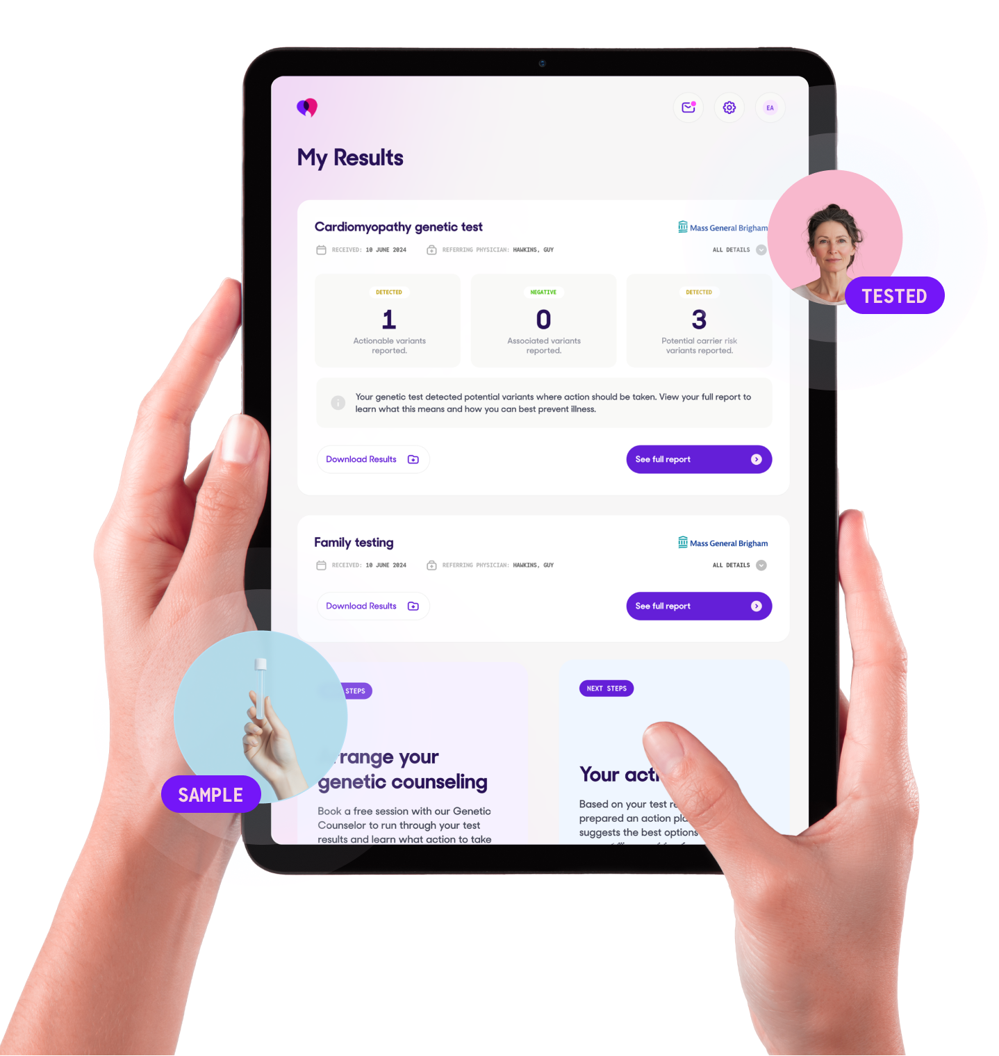 "Getting a test was fast and easy. Now I understand the risks for my family and what we should do next."